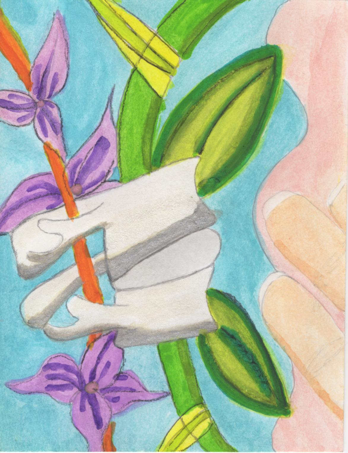 Watercolor and charcoal on paper, 4″ x 6″