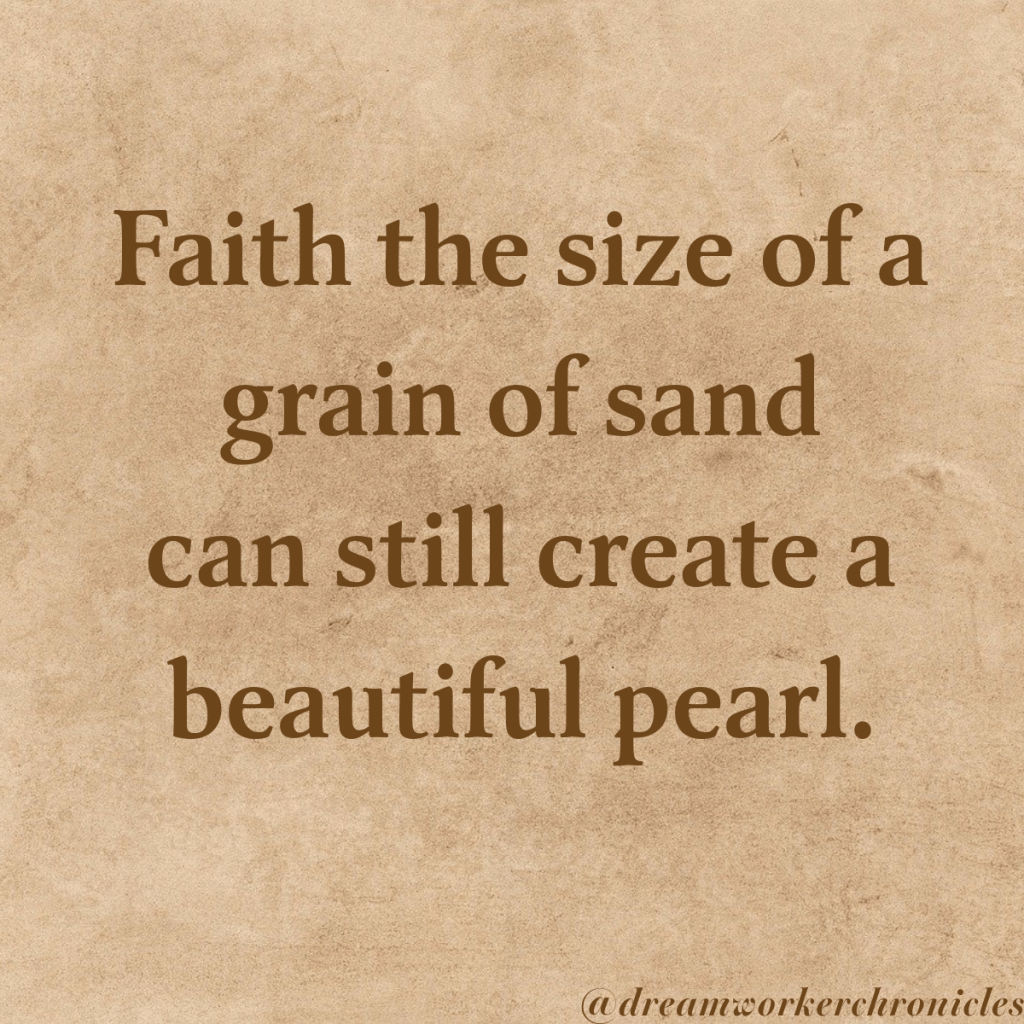 “Let every decision and everything I do build from the grain of sand of truth, faith, and love. Let it continue to build, grow, and shine into a beautiful pearl.