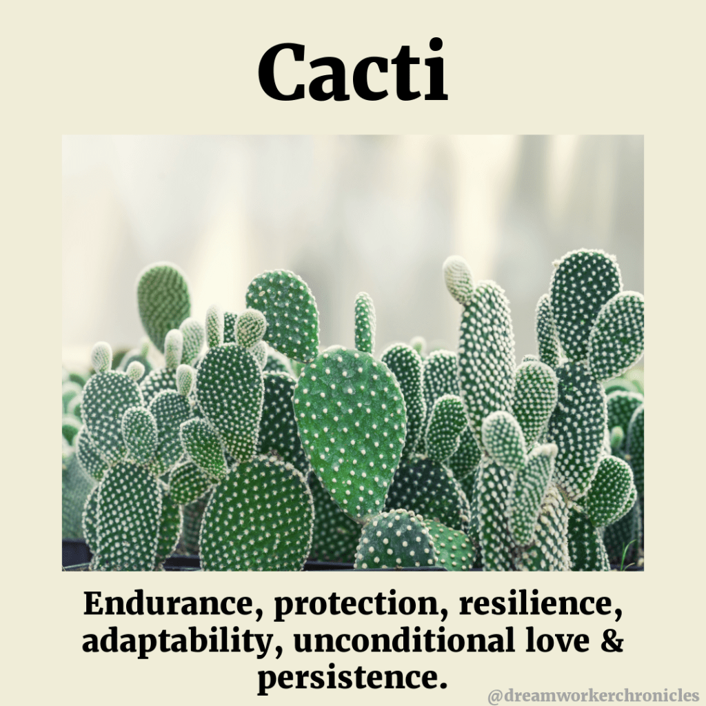 However the cactus is a beautiful and strong plant that represents so many good things – protection, persistence – much like the needles that love to embed themselves into anything with only a slight touch. They can produce stunning flowers, adapt to incredibly harsh conditions and represent the everlasting strength and protection in Spirit.