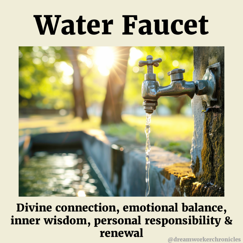 A closed faucet or one that you have to turn on can represent our need to access the Divine through intentional action.